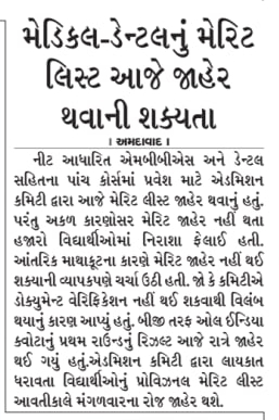 Gujarat Medical Merit List 2019: Click Here